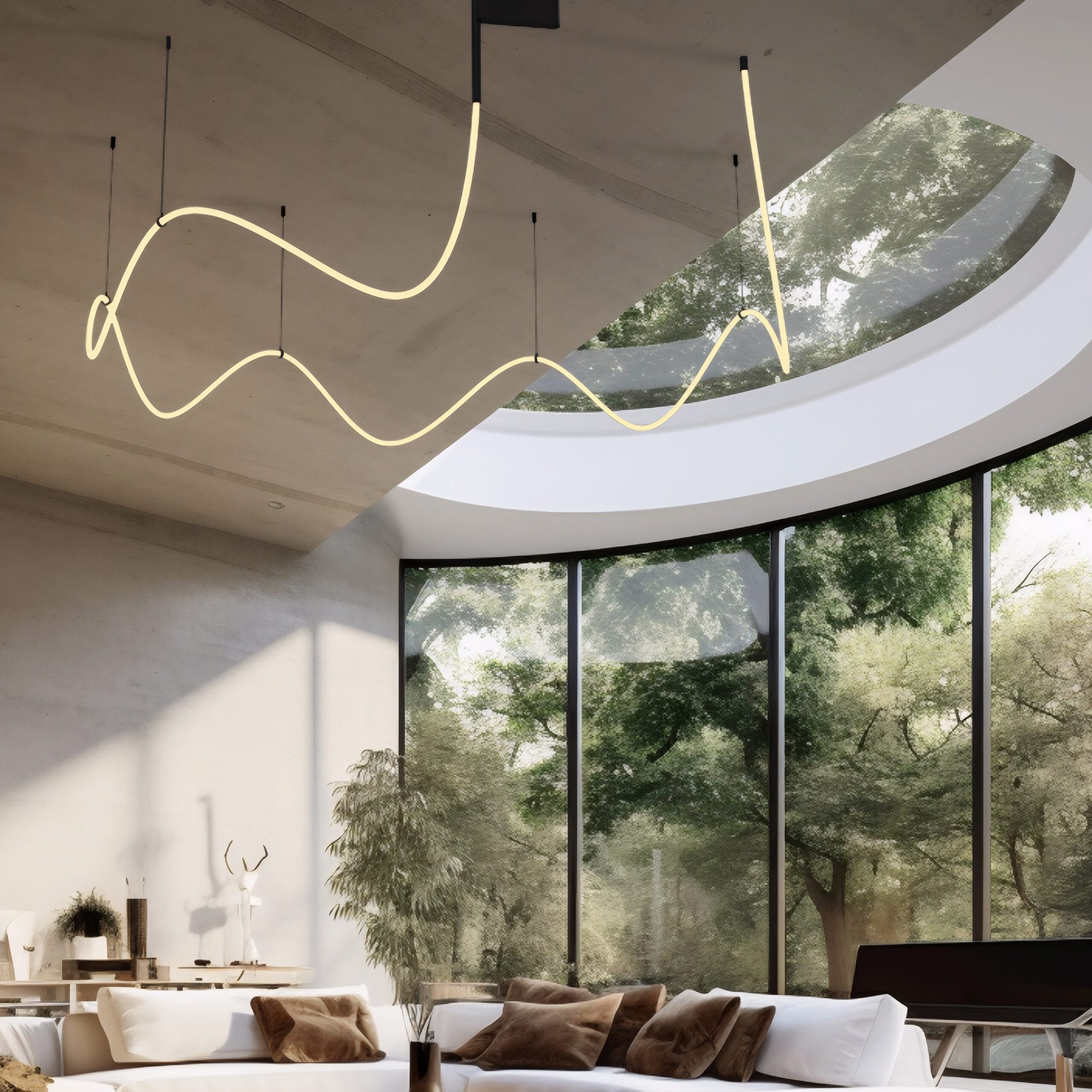 Каждая модель серии словно выткана из фотонов — гибкие, воздушные, но технологичные конструкции дают свободу в архитектуре света. Weavon органично вписывается в современные интерьеры, подчёркивая динамику пространства мягким неоновым шлейфом.