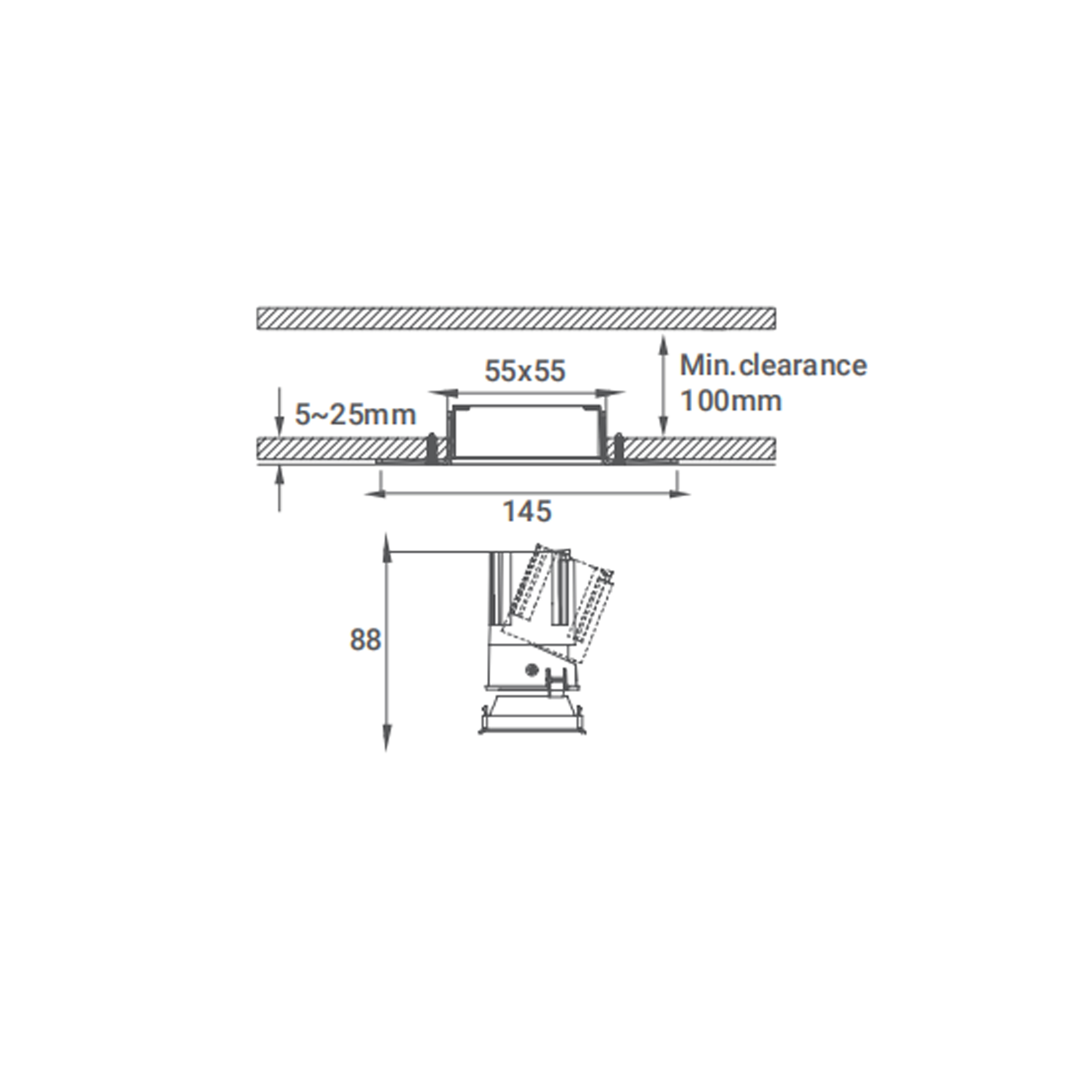 | Способ установки | Встроенное отверстие Ø55*55 (мм) |