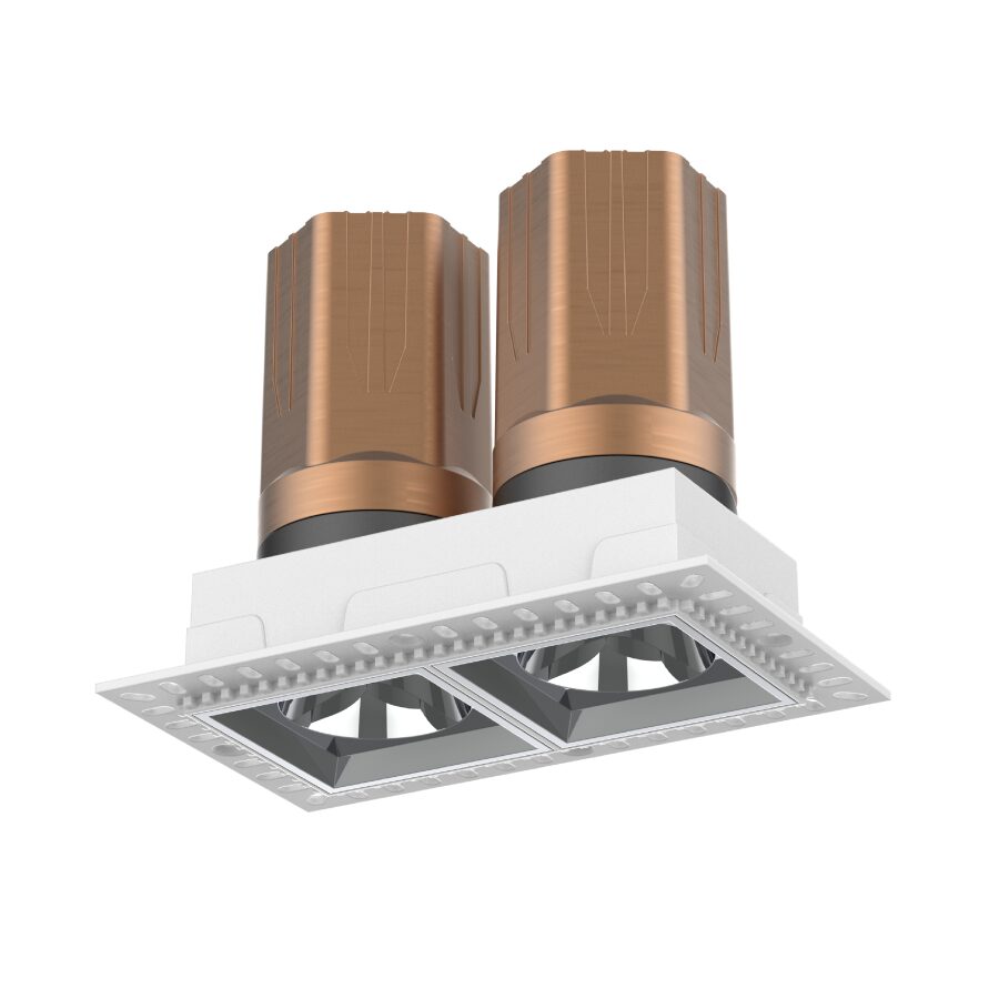 Двухрожковый квадратный светильник Flumen 55 с антирефлексной вставкой — мощное и эстетичное решение для освещения пространств, требующих направленного света. Подходит для зон с высоким потолком или акцентных зон.