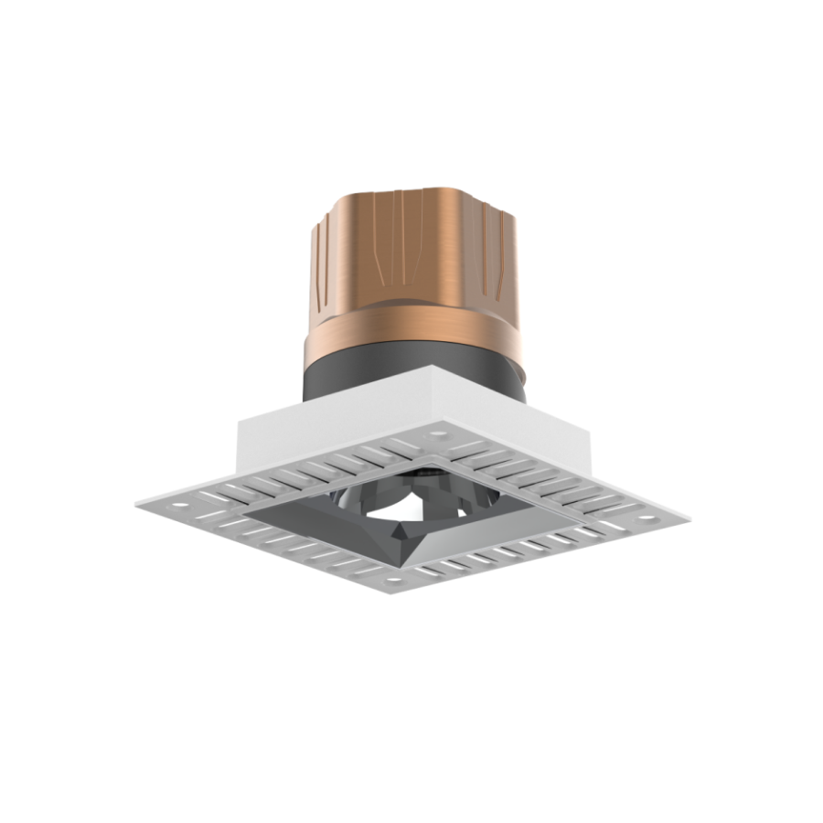 Квадратный встроенный светильник Flumen 75 с аккуратной геометрией и глубоким отражателем обеспечивает направленный, комфортный свет. Высокий CRI>97 подчёркивает естественные оттенки интерьера, а широкий выбор углов и отделок позволяет точно настроить акцентное освещение.