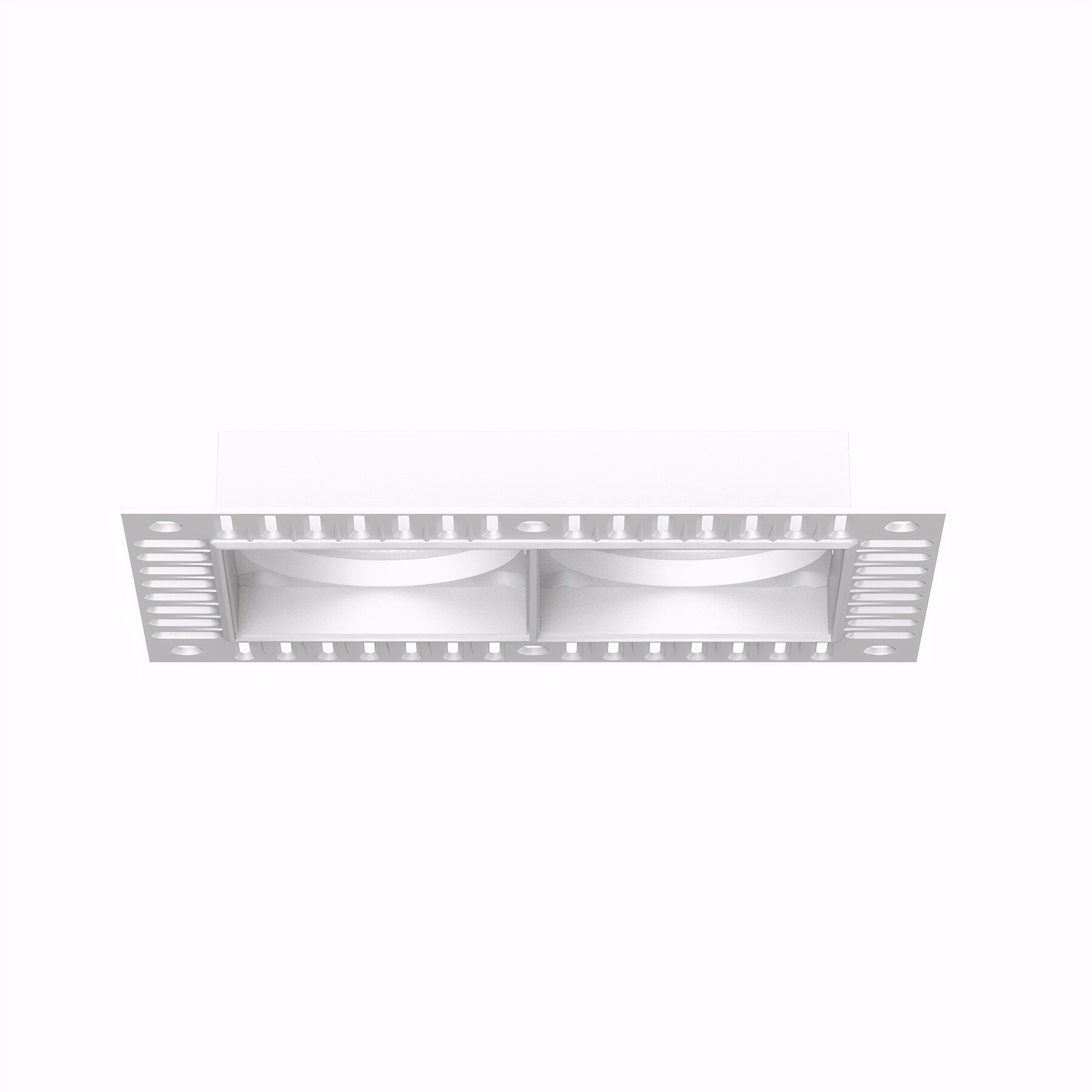 Монтажный элемент предварительной установки для двойных светильников Flumen 75. Обеспечивает точное формирование длинного посадочного места на этапе чернового монтажа. Подходит для светильников с монтажным отверстием Ø150×75 мм.