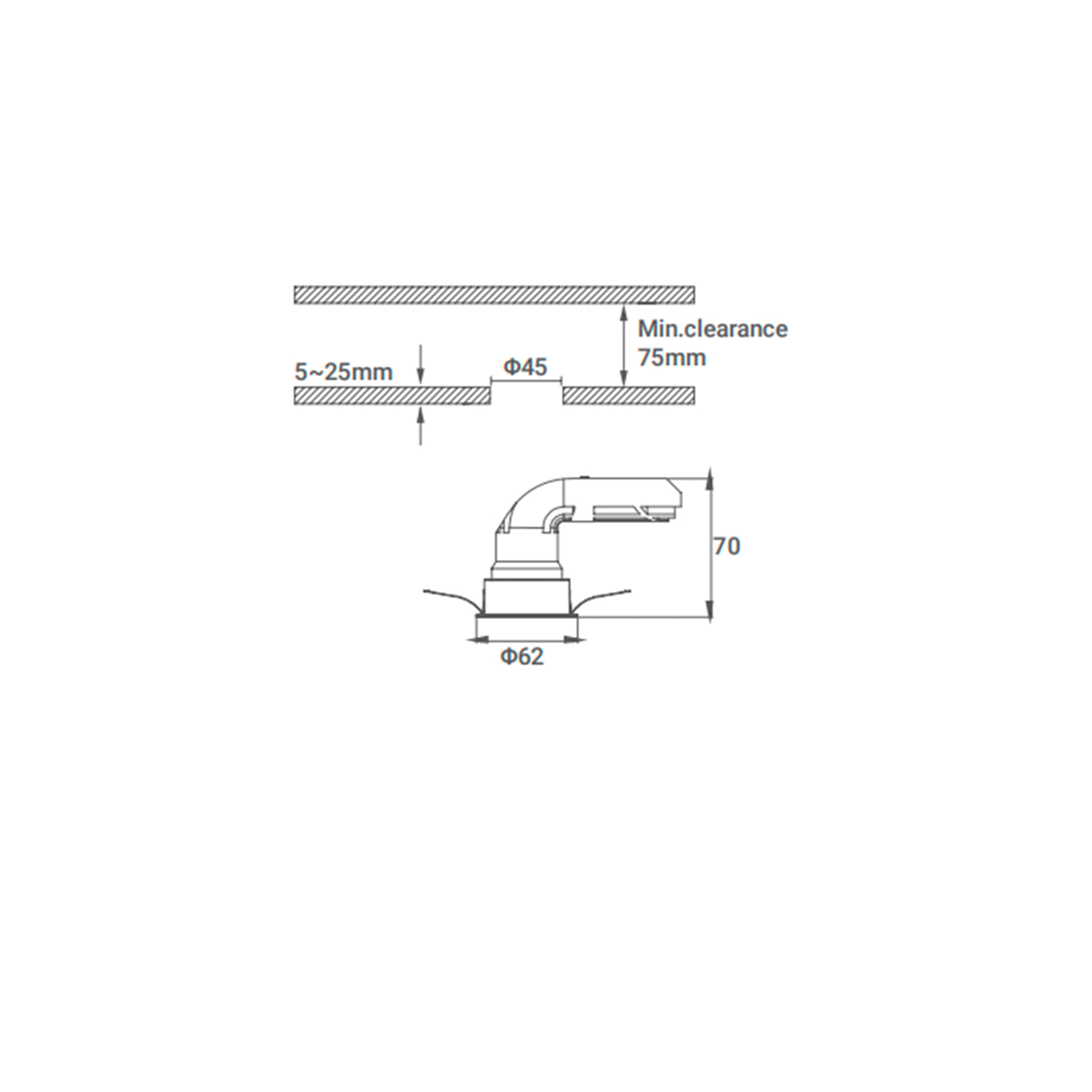 | Способ установки | встроенный, отверстие Ø35 |