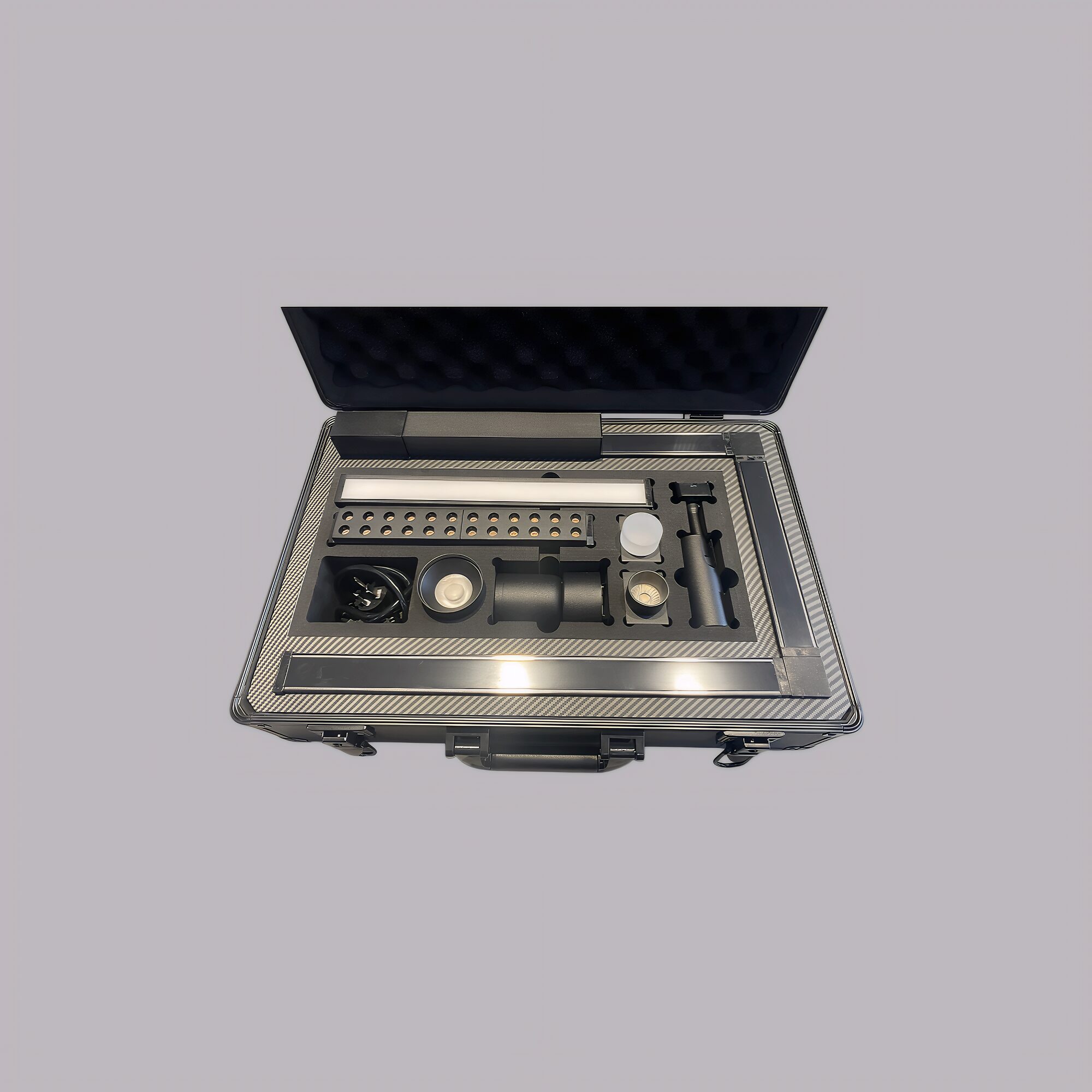 Демонстрационный кейс MetaStripe с встроенными модулями и внешним блоком питания. Поставляется с оформлением: светлое дерево / тёмное дерево / карбон (случайная поставка).