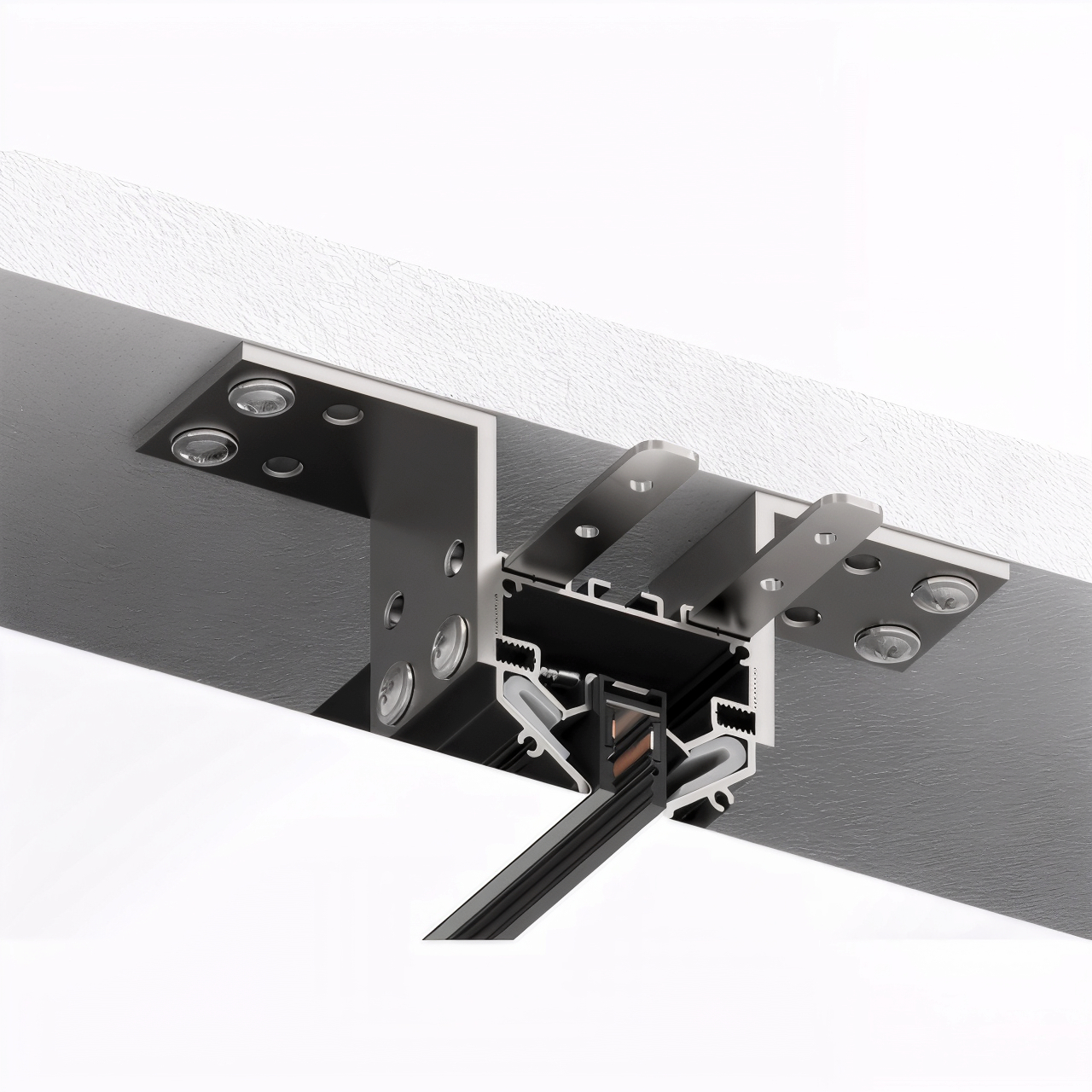 Фиксирующий элемент UN5-RM для магнитной трековой системы. Чёрный корпус. Подходит для потолочного монтажа.