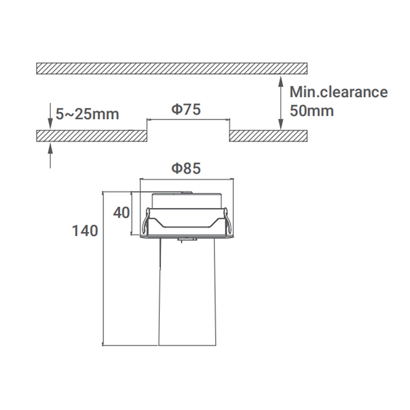 | Монтажное отверстие | Ø75 мм|Ø55 мм |