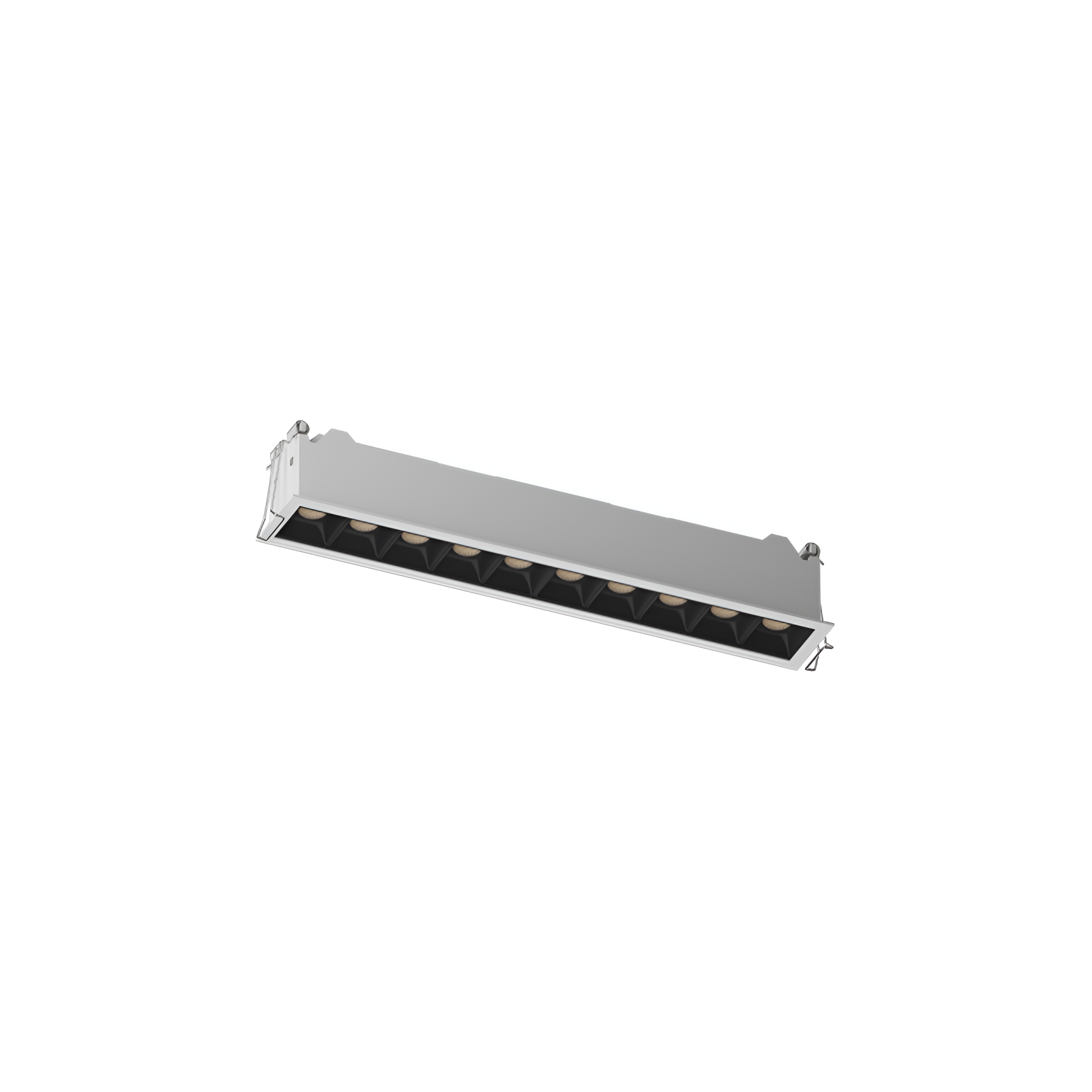 Встраиваемый линейный светильник Starlink, Десять светодиодных источников света, тонкая наружная монтажная рамка, стандартная модель отражателя.